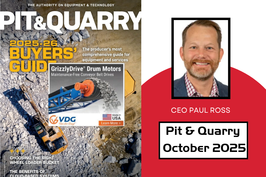 Douglas Rulmeca is proud to be featured in the October 2025 issue of Pit & Quarry Magazine, which explores the engineering behind modern idler performance in the aggregate industry. The article highlights insights from Douglas Rulmeca President and CEO Paul Ross and Corporate Engineering Manager Simone Costa of Rulmeca Holding, who discuss how advanced sealing systems, precision machining, and high-efficiency bearing designs are redefining reliability and uptime for conveying systems across quarries.