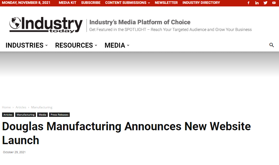 Douglas Manufacturing apareció recientemente en Industry Today para el lanzamiento de nuestro nuevo sitio web.