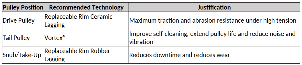 Advanced pulley technologies such as the Vortex® Spiral Clean Pulley, Replaceable Rim Lagging, Ceramic Lagging, and thicker wing contact bars represent significant improvements in conveyor system engineering. These innovations directly address common failure modes, reducing the impact of wear while extending the operational life of pulleys and conveyor belts.